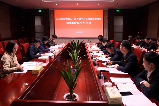 3月1日上午,省咨詢公司組織召開了2020年度民主生活會。湘投集團公司黨委委員、董事、總會計師石小明率指導組到會指導,公司領導班子成員及相關部室負責人參
