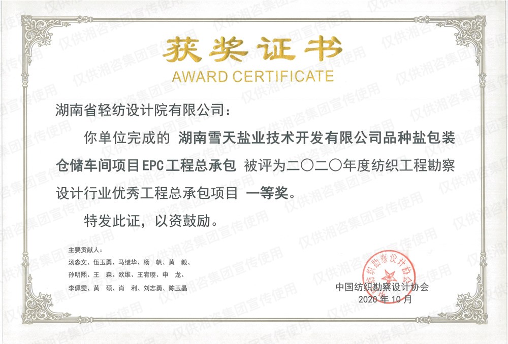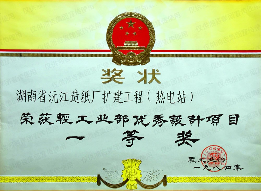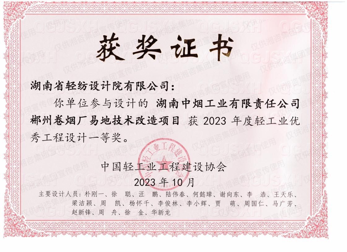 中國輕工業(yè)工程建設協會優(yōu)秀工程設計一等獎
