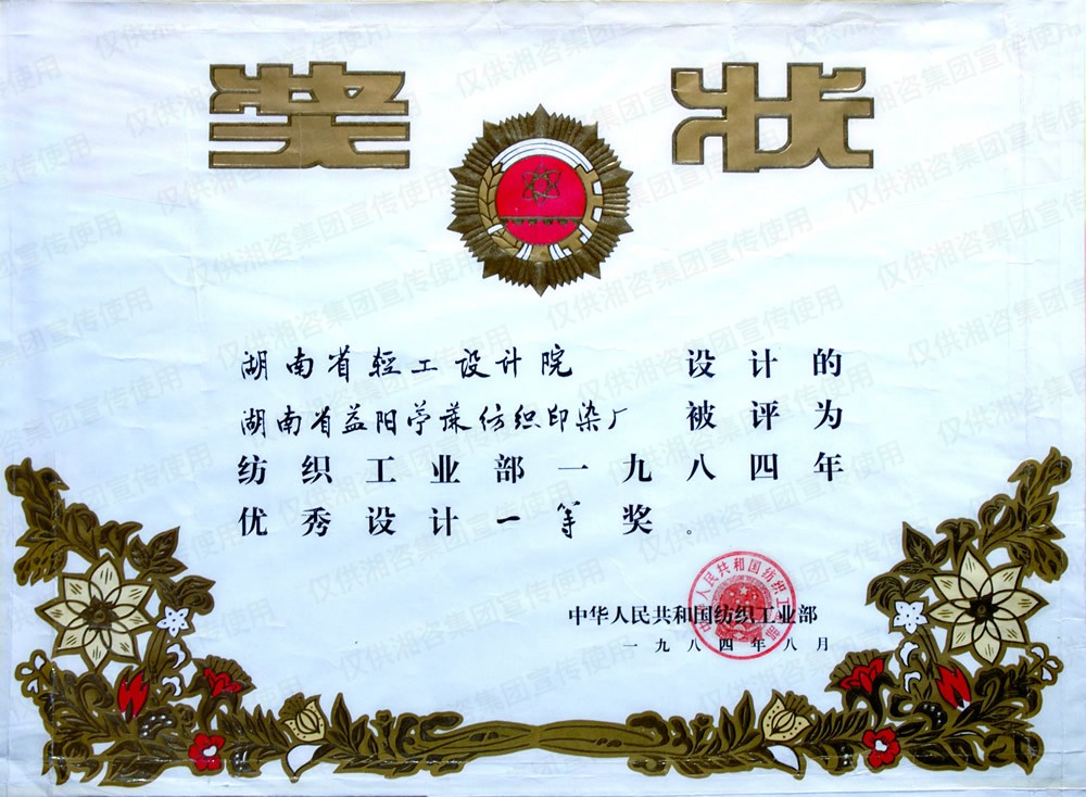 國家紡織工業(yè)部優(yōu)秀設計一等獎
