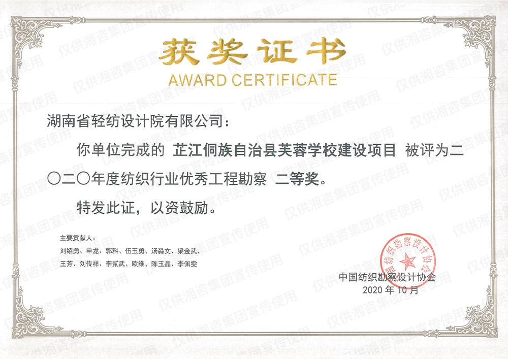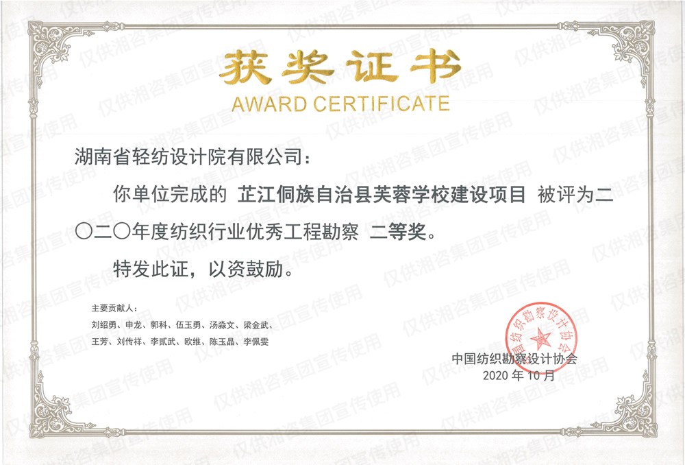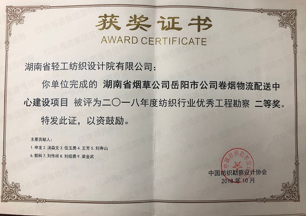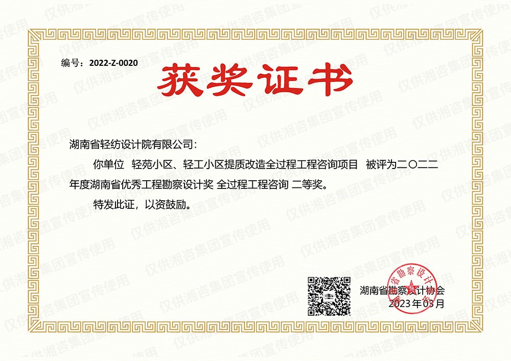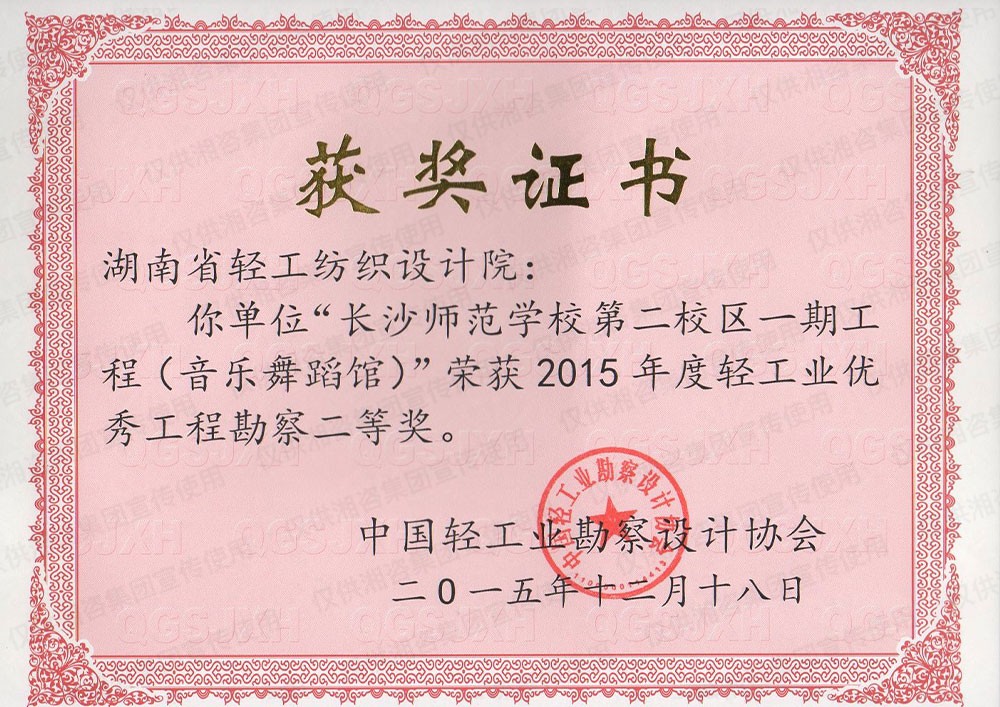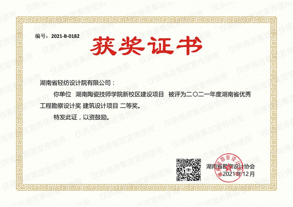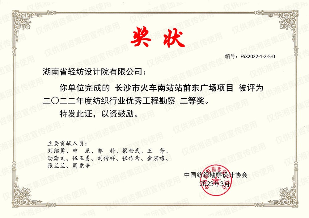 湖南省勘察設計協會優(yōu)秀工程勘察設計二等獎