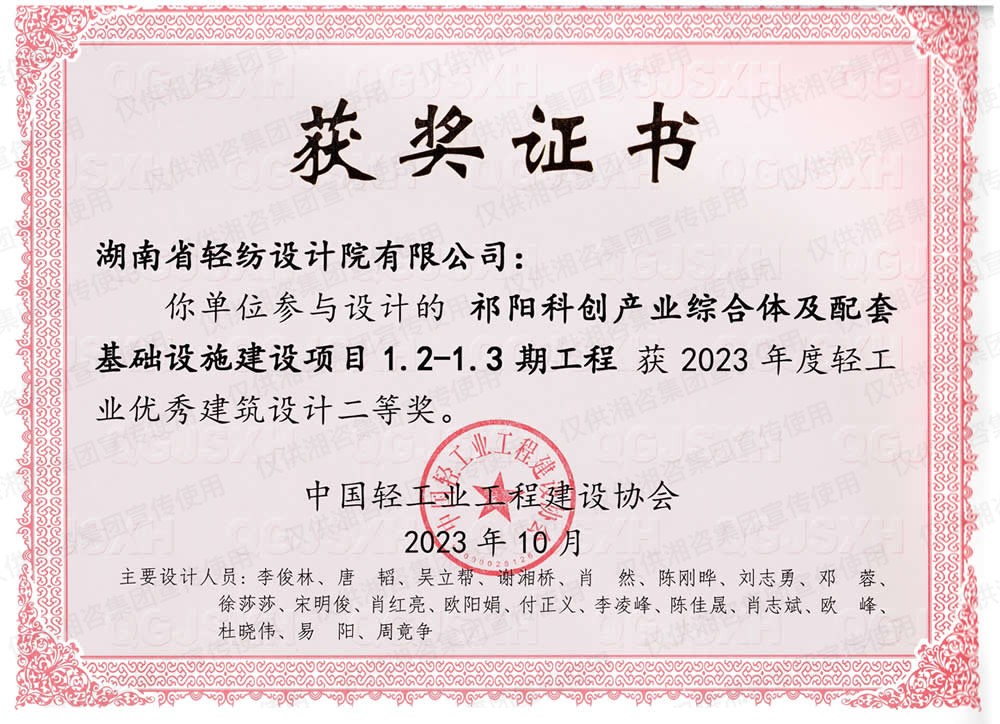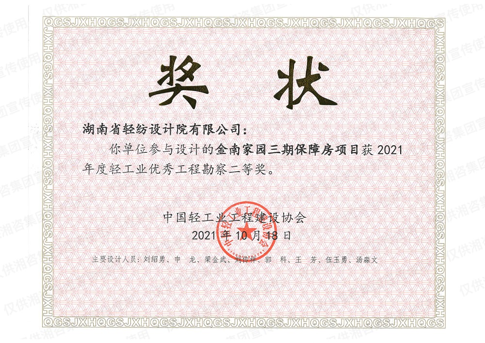 中國輕工業(yè)工程建設協會優(yōu)秀建筑設計二等獎