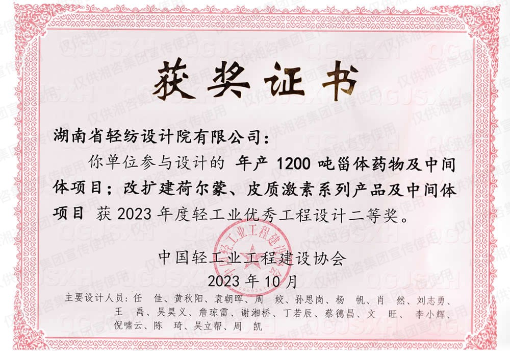 中國輕工業(yè)工程建設協會優(yōu)秀工程設計二等獎