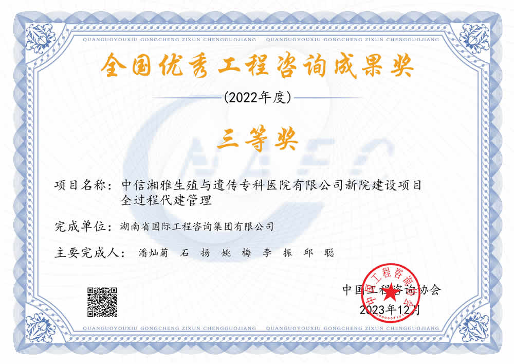 中信湘雅生殖與遺傳專科醫(yī)院有限公司新院建設項目全過程代建管理