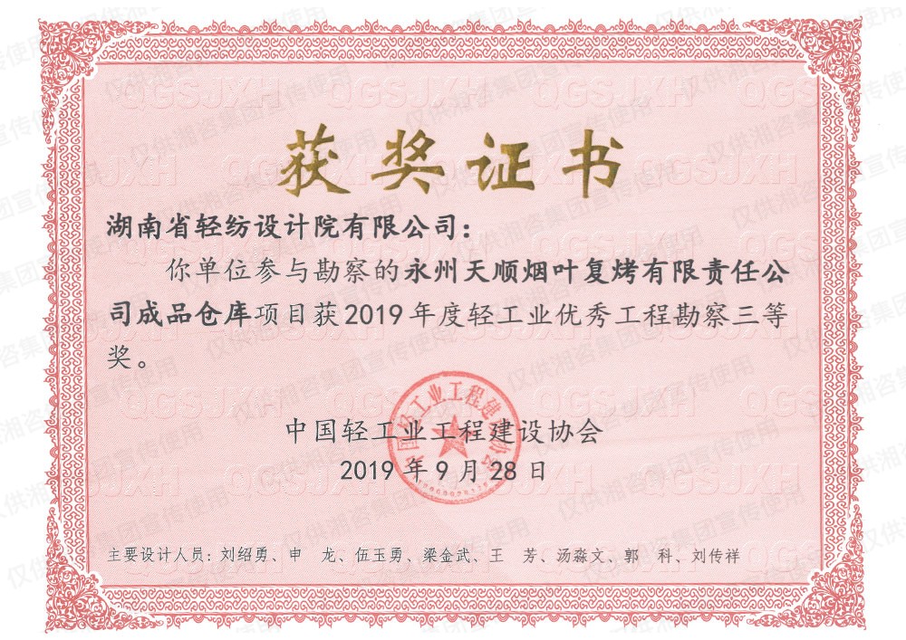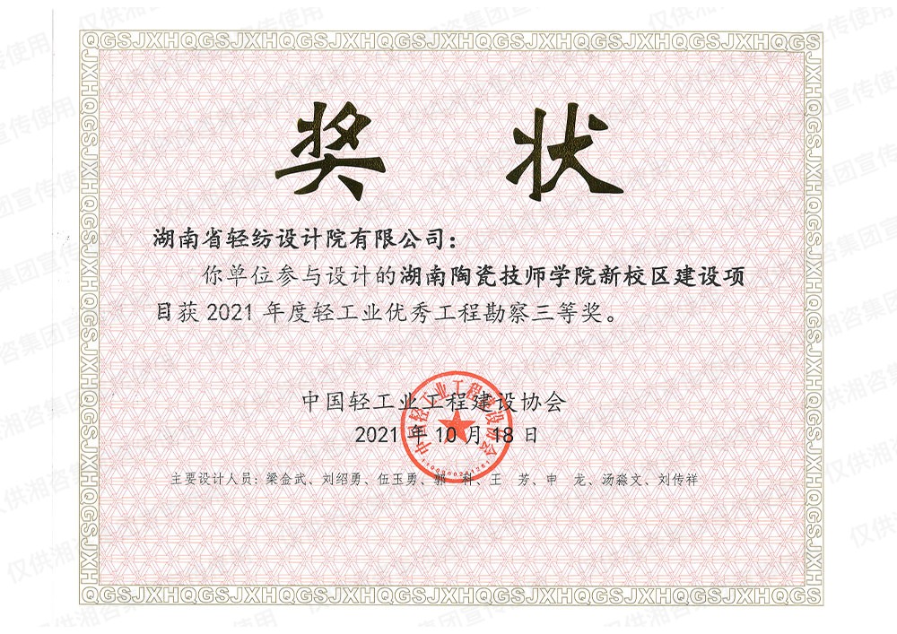 中國輕工業(yè)工程建設協會優(yōu)秀工程勘察三等獎