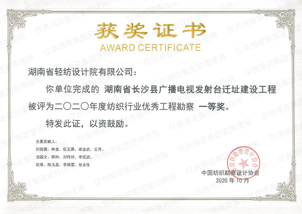 中國紡織勘察設計協會優(yōu)秀工程勘察一等獎