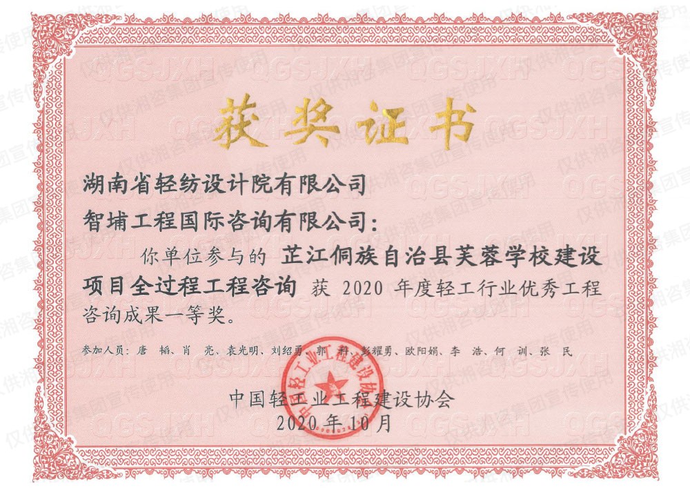 中國輕工業(yè)工程建設協會優(yōu)秀工程咨詢成果一等獎