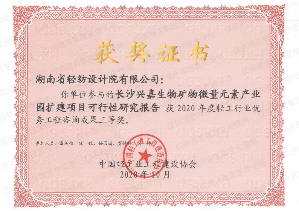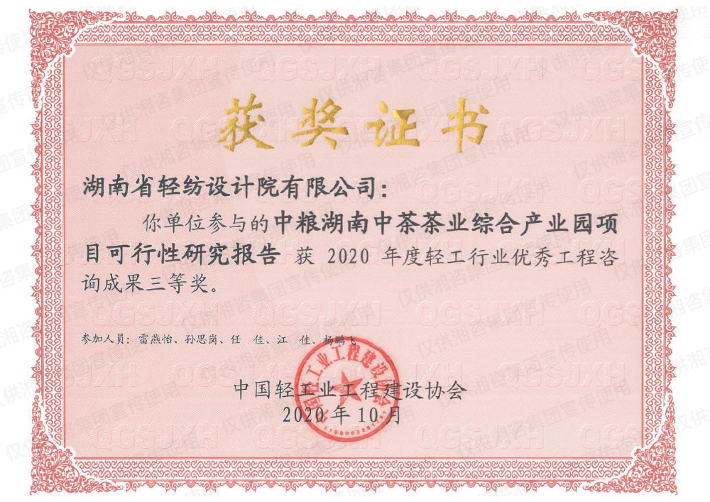 中國輕工業(yè)工程建設協會優(yōu)秀工程咨詢成果三等獎
