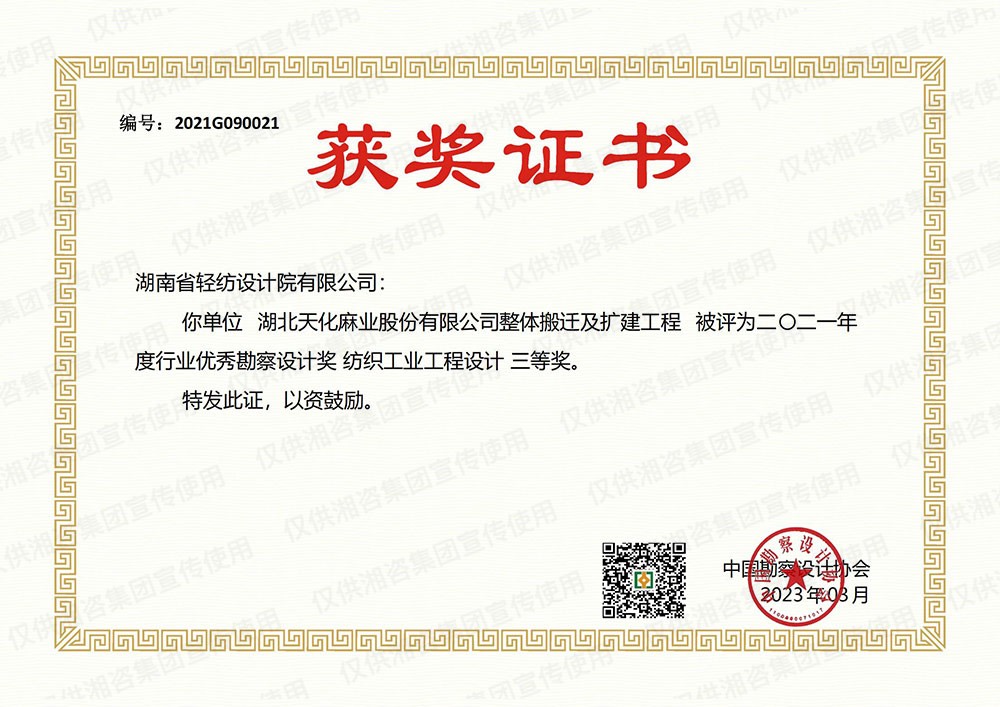 中國紡織勘察設計協會優(yōu)秀工程勘察二等獎