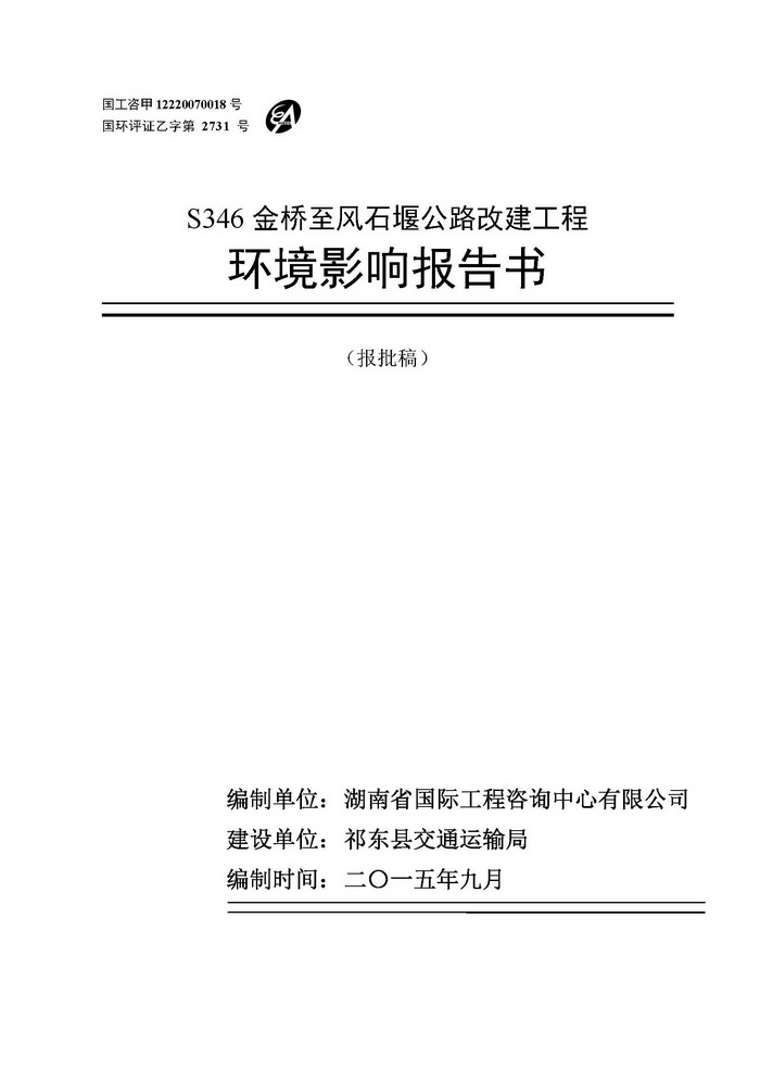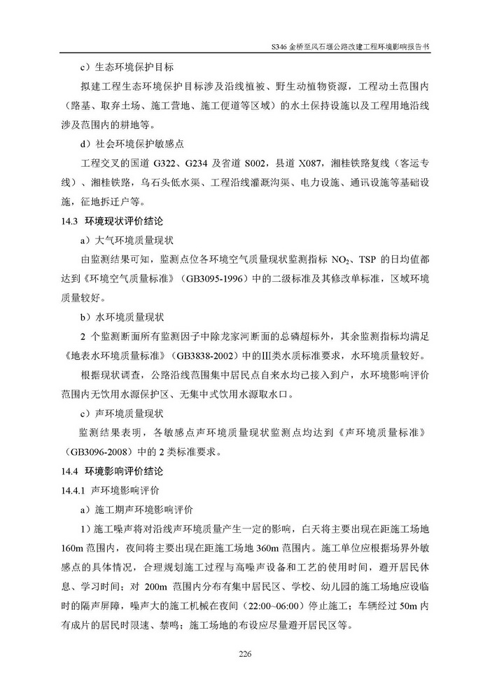S346金橋至風(fēng)石堰公路改建工程環(huán)評(píng)(報(bào)批)