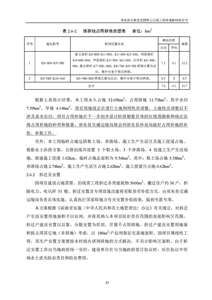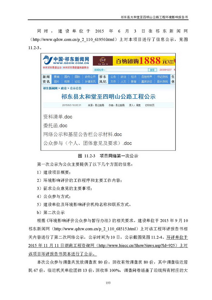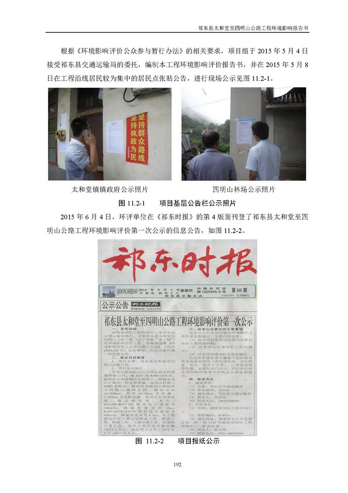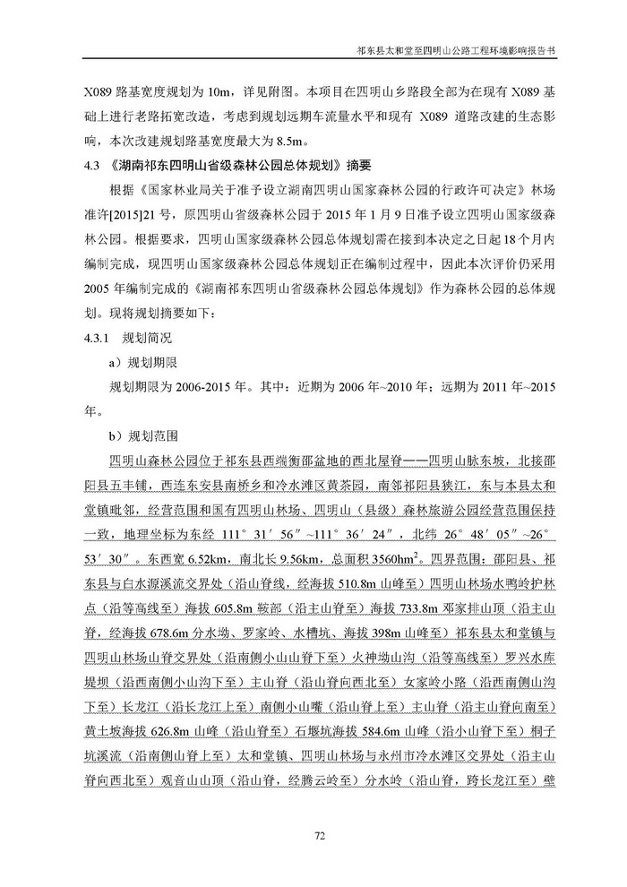《祁東縣太和堂至四明山公路工程環(huán)評報告書》全本公示