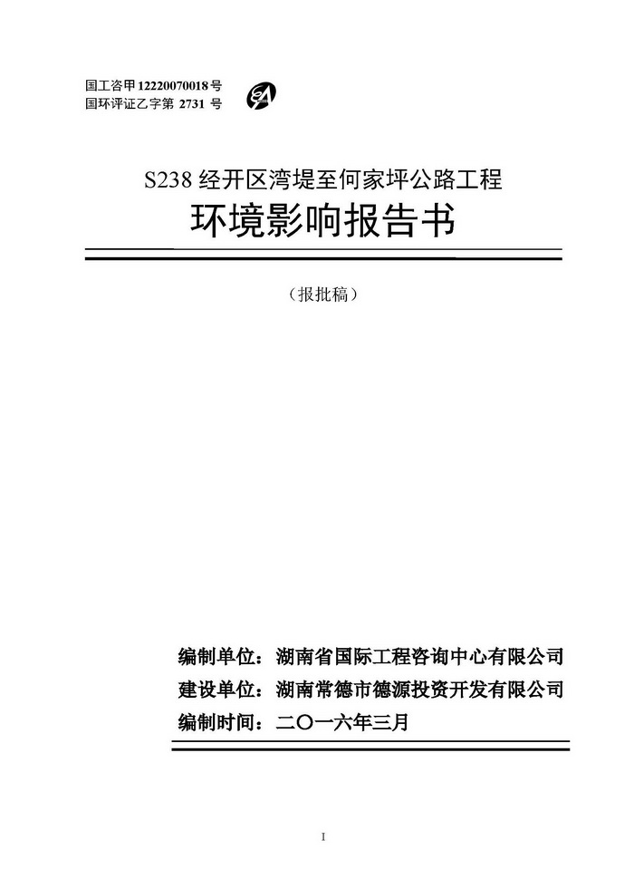 S238經(jīng)開區(qū)灣堤至何家坪公路工程(報批稿公示)