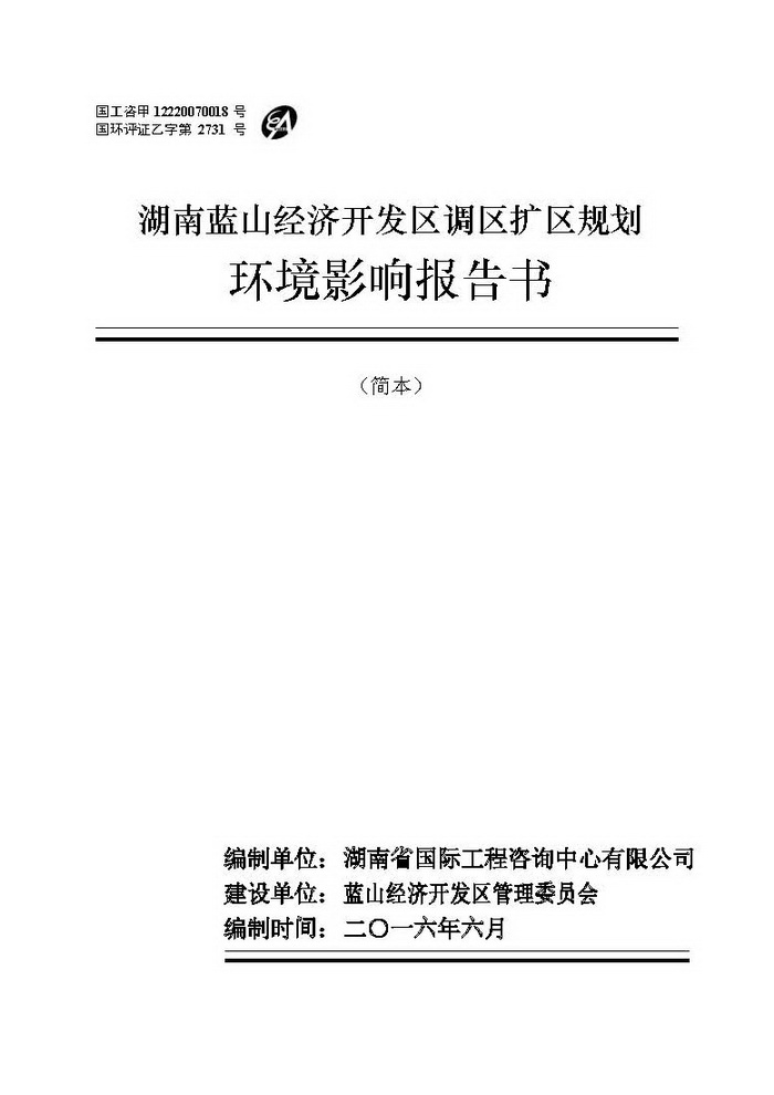 湖南藍山經濟開發區調區擴區規劃環評簡本公示