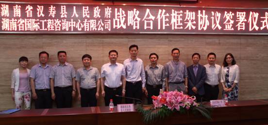 5月13日,湖南省國際工程咨詢中心與漢壽縣人民政府戰略合作框架協議簽署儀式在長沙舉行。中心董事長、總經理胡果雄,漢壽縣委副書記、縣長楊昶,漢壽縣委常委、常務副縣長袁佑清等出席協議簽署儀式。