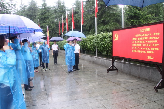 緊接著,在毛主席銅像前,全體黨員面對(duì)鮮紅的黨旗,高舉右手,神情莊重,齊聲重溫了入黨誓詞。