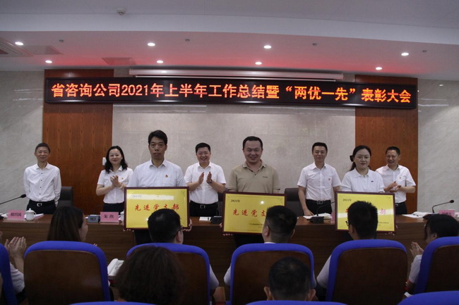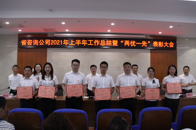 6月30日上午,省咨詢公司召開2021年上半年工作總結暨“兩優一先”表彰大會,公司領導班子成員、公司本部全體干部職工和分子公司代表參加會議。會議由公司黨委書記、董事長詹瓊雷主持。