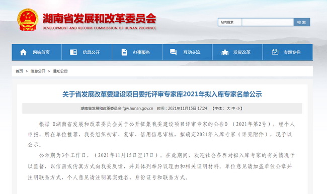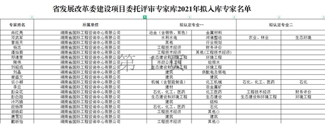 近日,根據《湖南省發展和改革委員會關于公開征集我委建設項目評審專家的公告》(2021年第2號),經省發展改革委審核研究決定,省發展改革委建設項目委托評審專家庫2021年擬入庫專家名單正式發布,我司謝盛文等19名專家成功入選。