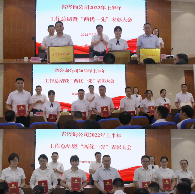 7月22日上午,省咨詢公司召開2022年上半年工作總結暨“兩優(yōu)一先”表彰大會,公司領導班子成員、公司本部全體干部職工和分子公司代表參加會議。會議由公司黨委書記、董事長詹瓊雷主持。