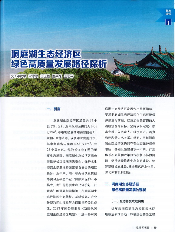 近日,由省咨詢公司生態規劃咨詢部撰寫的《洞庭湖生態經濟區綠色高質量發展路徑探析》一文被《中國工程咨詢》(中國工程咨詢協會主辦)2023年第3期刊用。