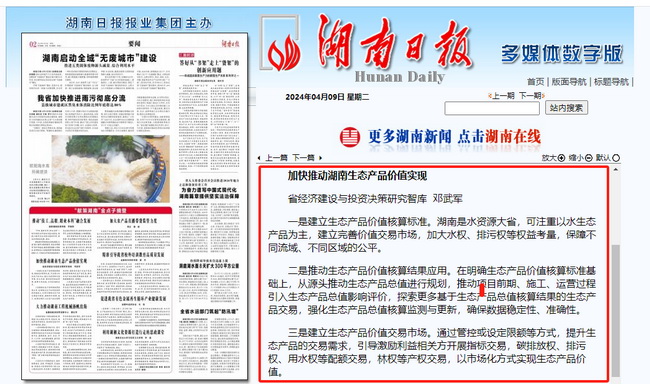 為順利實(shí)現(xiàn)“三高四新”美好藍(lán)圖,加快推進(jìn)高質(zhì)量發(fā)展,湖南省委決定在全省開展解放思想大討論活動(dòng),面向社會(huì)開展“獻(xiàn)策湖南”金點(diǎn)子征集活動(dòng)。湖南省國(guó)際工程咨詢集團(tuán)有限公司(以下簡(jiǎn)稱“湘咨集團(tuán)”)作為省級(jí)“智囊團(tuán)”積極響應(yīng),撰寫的《加快推動(dòng)湖南生態(tài)產(chǎn)品價(jià)值實(shí)現(xiàn)》于4月9日獲湖南日?qǐng)?bào)再次摘登。