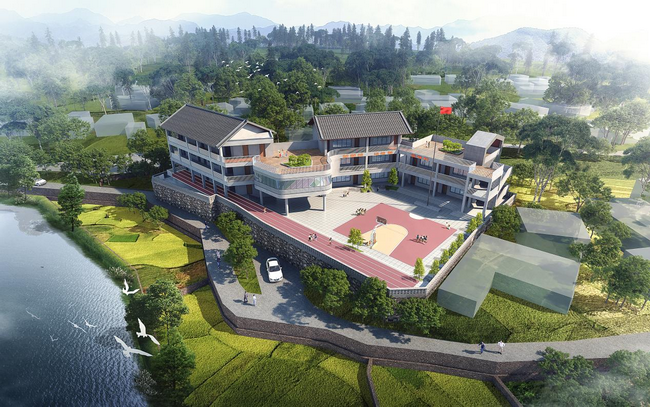 磨老小學地處湘黔邊區,位置特殊,責任重大。項目自開工以來,面對基礎條件差,規劃標準高,時間緊等諸多挑戰,民建及市政院設計團隊迎難而上,主動作為,高標準、嚴要求,優化資源配置,倒排工期、責任到人,在2個月內優質高效地完成了項目的初步設計和施工圖設計,為邊區人民眾遞交了一份滿意的答卷。最終建成的磨老小學規劃用地面積2191平方米,建筑占地680 平方米,總建筑面積達1847 平方米,設計容納學生共175人,此外新建了學生運動場、食堂和學生就餐間,可完全滿足師生教育教學和生活的需要。