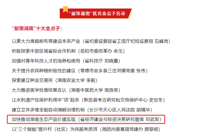 “獻(xiàn)策湖南”金點(diǎn)子征集活動(dòng)是省委安排部署、省委社會(huì)工作部牽頭負(fù)責(zé)的一項(xiàng)人民建議征集工作。“湘咨集團(tuán)”作為省級(jí)“智囊團(tuán)”積極參與、踴躍獻(xiàn)策,撰寫的《加快推動(dòng)湖南生······
