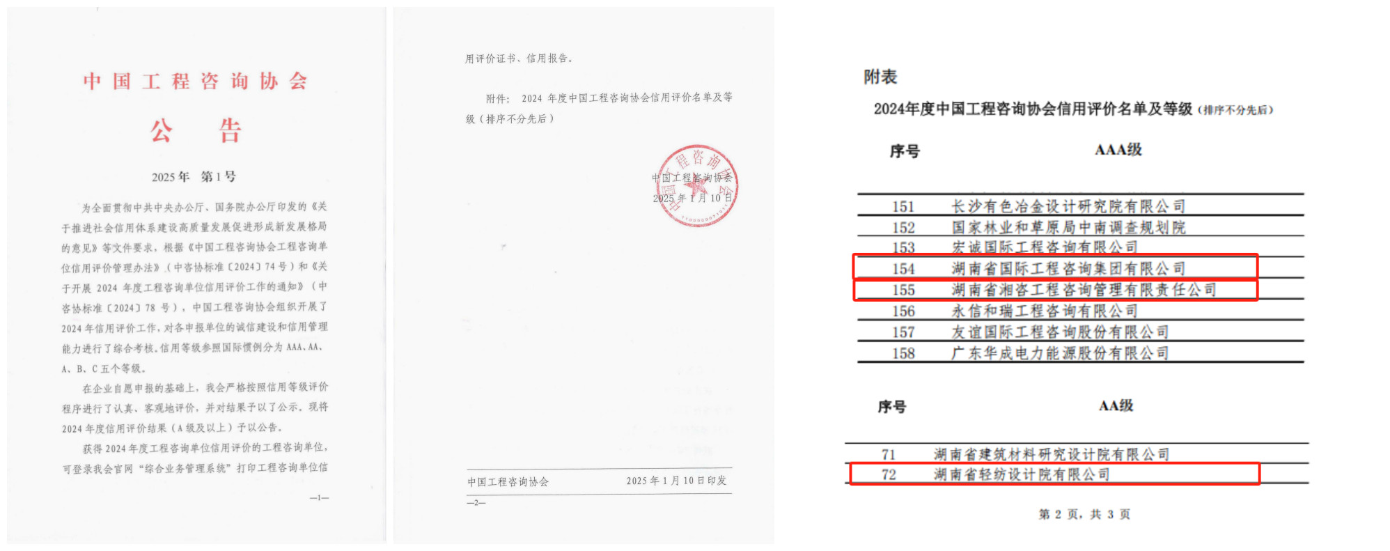 2025年1月10日,中國工程咨詢協(xié)會(huì)(下稱“中咨協(xié)”)發(fā)布2025年第1號(hào)公告,湘咨集團(tuán)成功獲評(píng)2024年工程咨詢單位信用評(píng)價(jià)等級(jí)AAA級(jí)。據(jù)省咨詢協(xié)會(huì)統(tǒng)計(jì),······